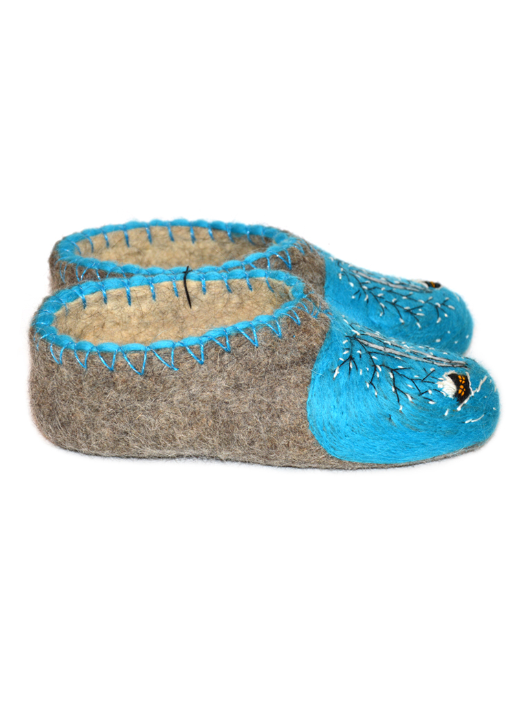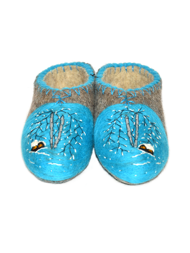 Тапочки женские "Березки" изготовлены из 100% овечьей шерсти.