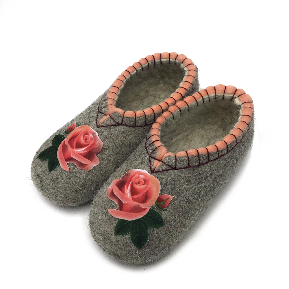Тапочки женские "Чайная роза" изготовлены из 100% овечьей шерсти.