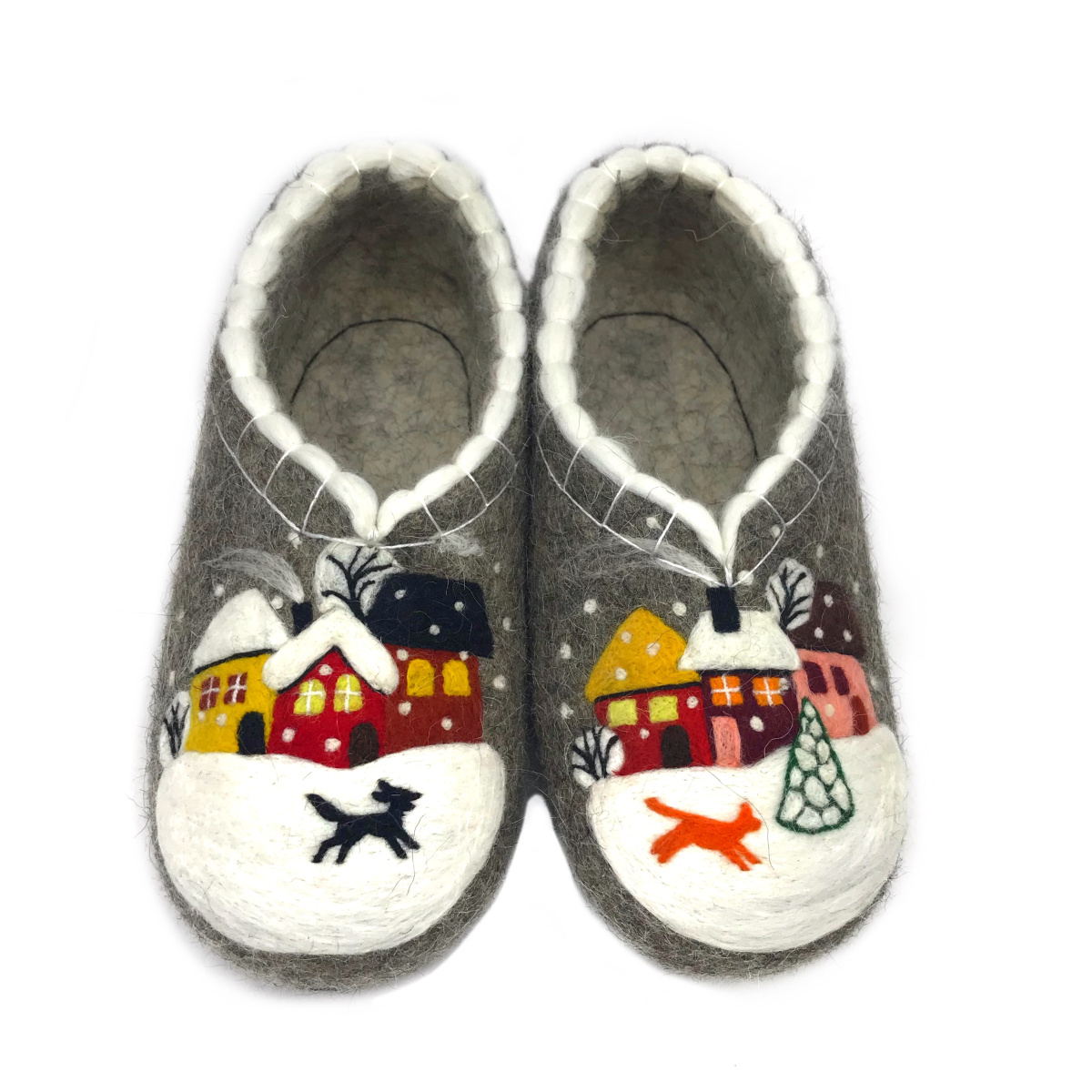 Тапочки женские "Домик в деревне" изготовлены из 100% овечьей шерсти.