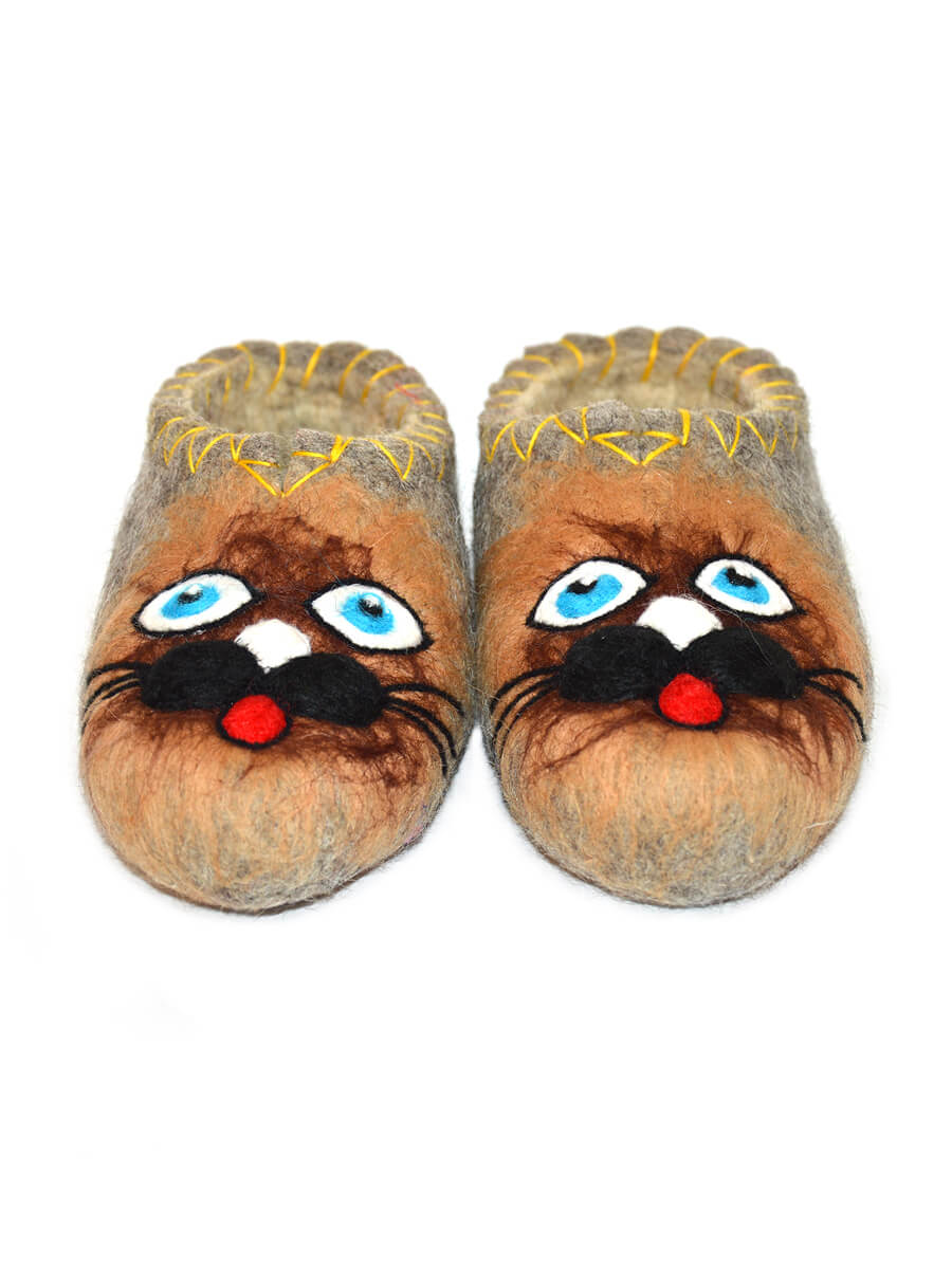 Тапочки женские "Кот" изготовлены из 100% овечьей шерсти.
