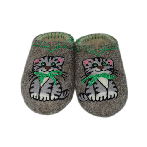 Тапочки женские "Котик" изготовлены из 100% овечьей шерсти.