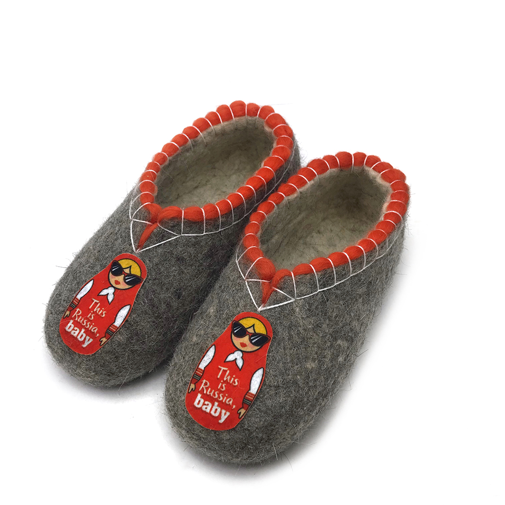 Тапочки женские "Матрешка" изготовлены из 100% овечьей шерсти.