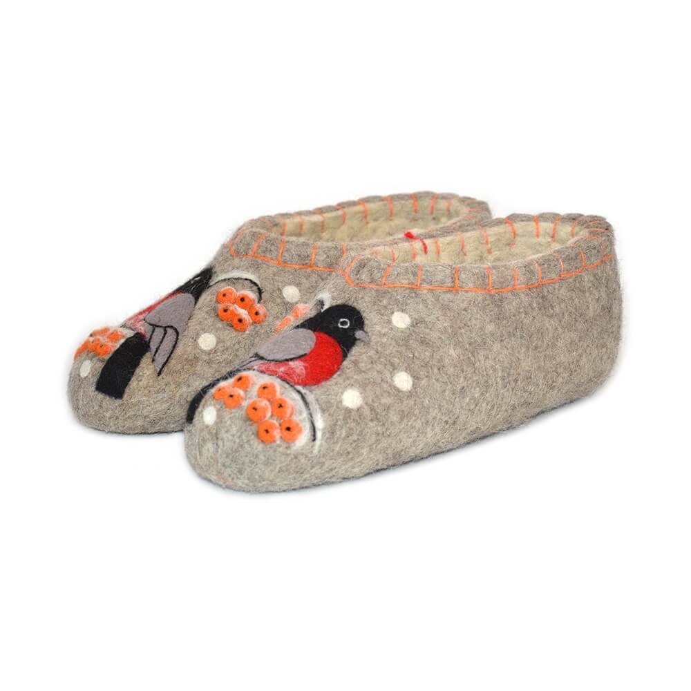 Тапочки женские "Перелетные птицы" изготовлены из 100% овечьей шерсти.