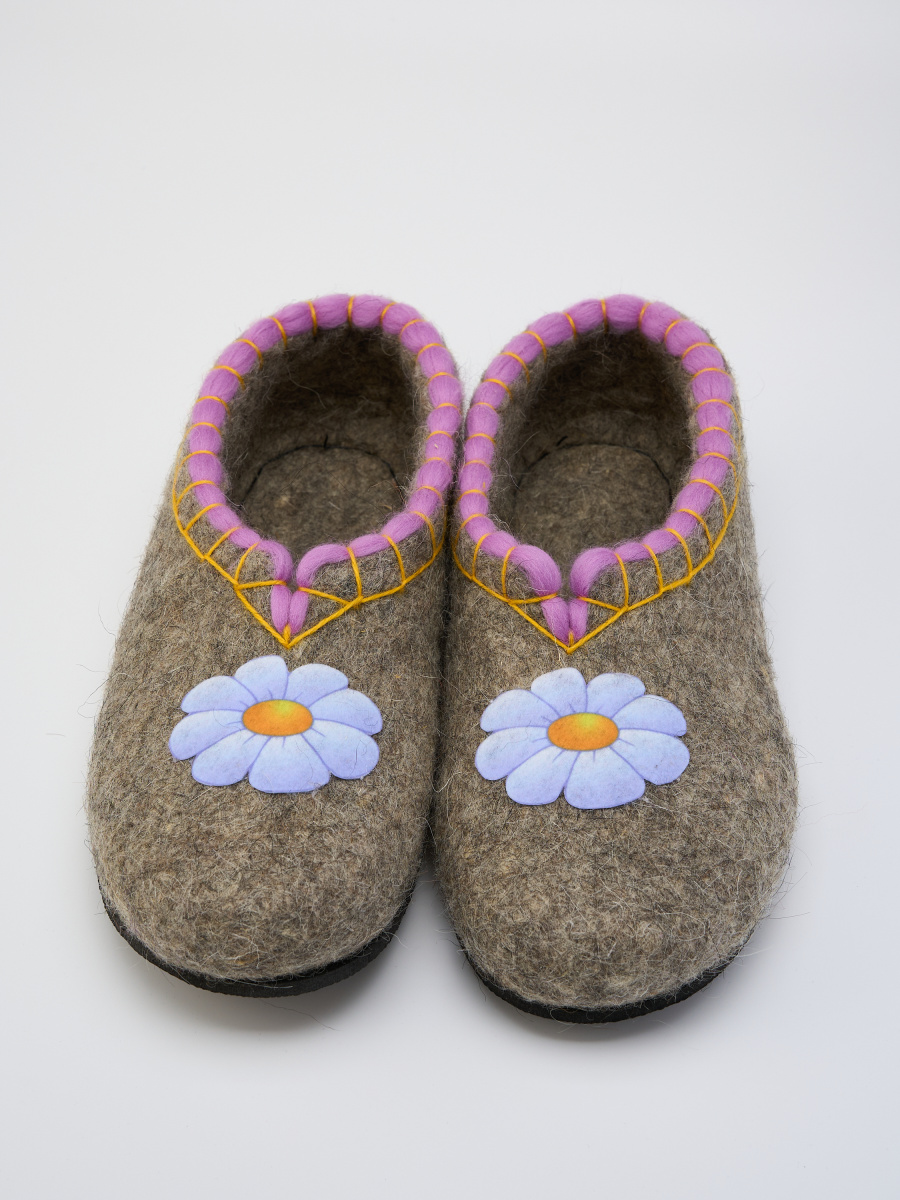 Тапочки женские "Ромашки" изготовлены из 100% овечьей шерсти.