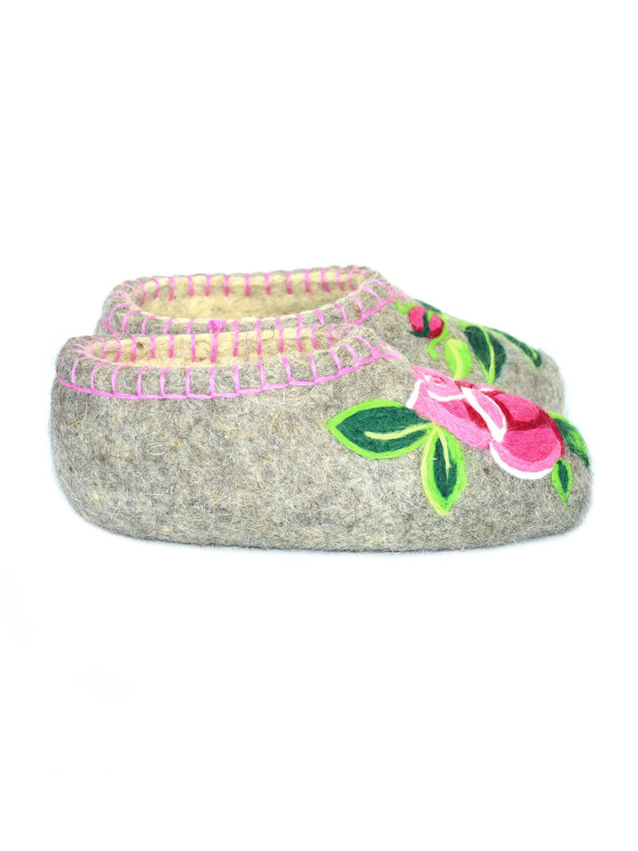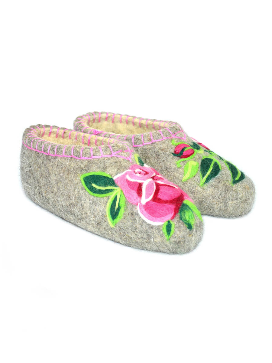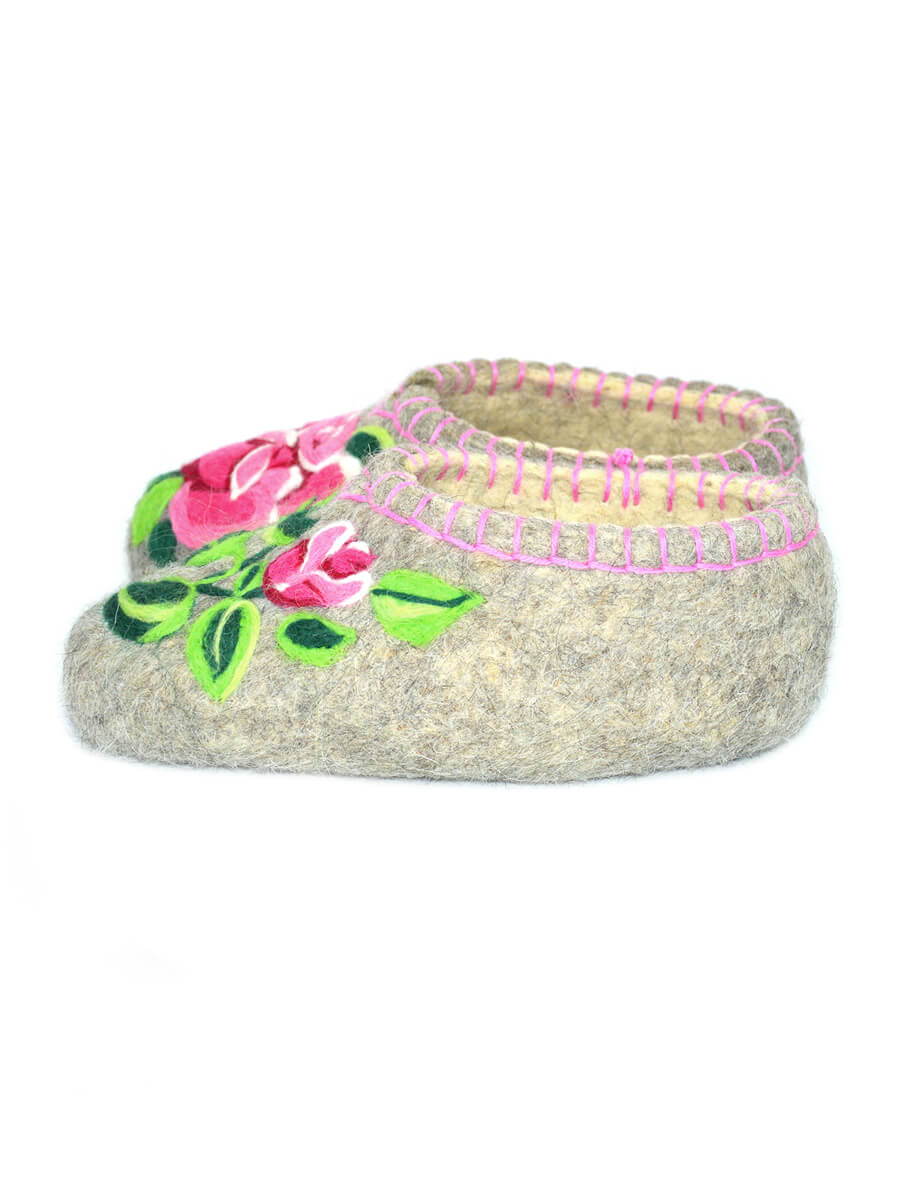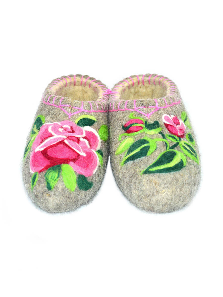 Тапочки женские "Роза" изготовлены из 100% овечьей шерсти.
