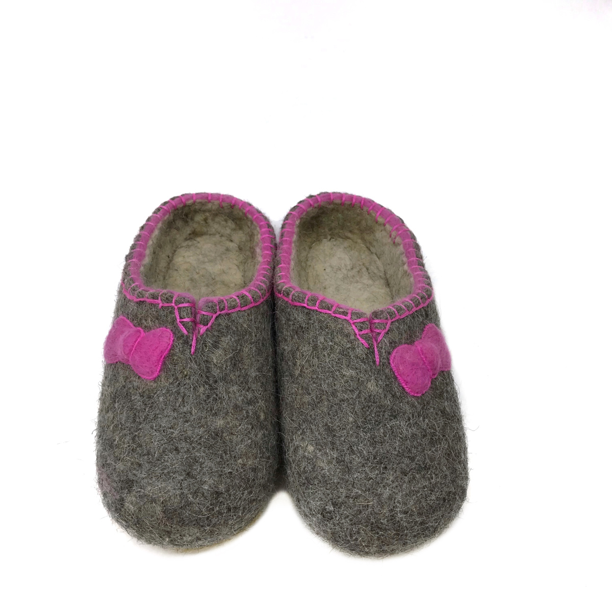 Тапочки женские "Розовый бантик" изготовлены из 100% овечьей шерсти.
