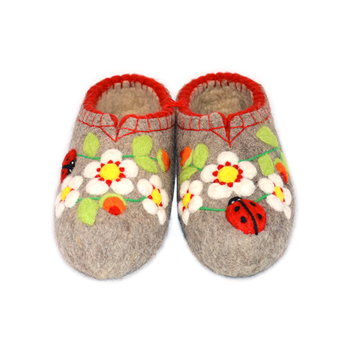 Тапочки женские "Цветочный венок" изготовлены из 100% овечьей шерсти.