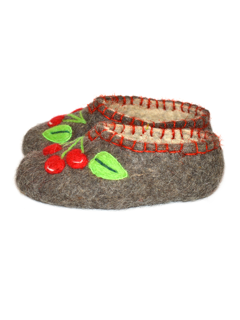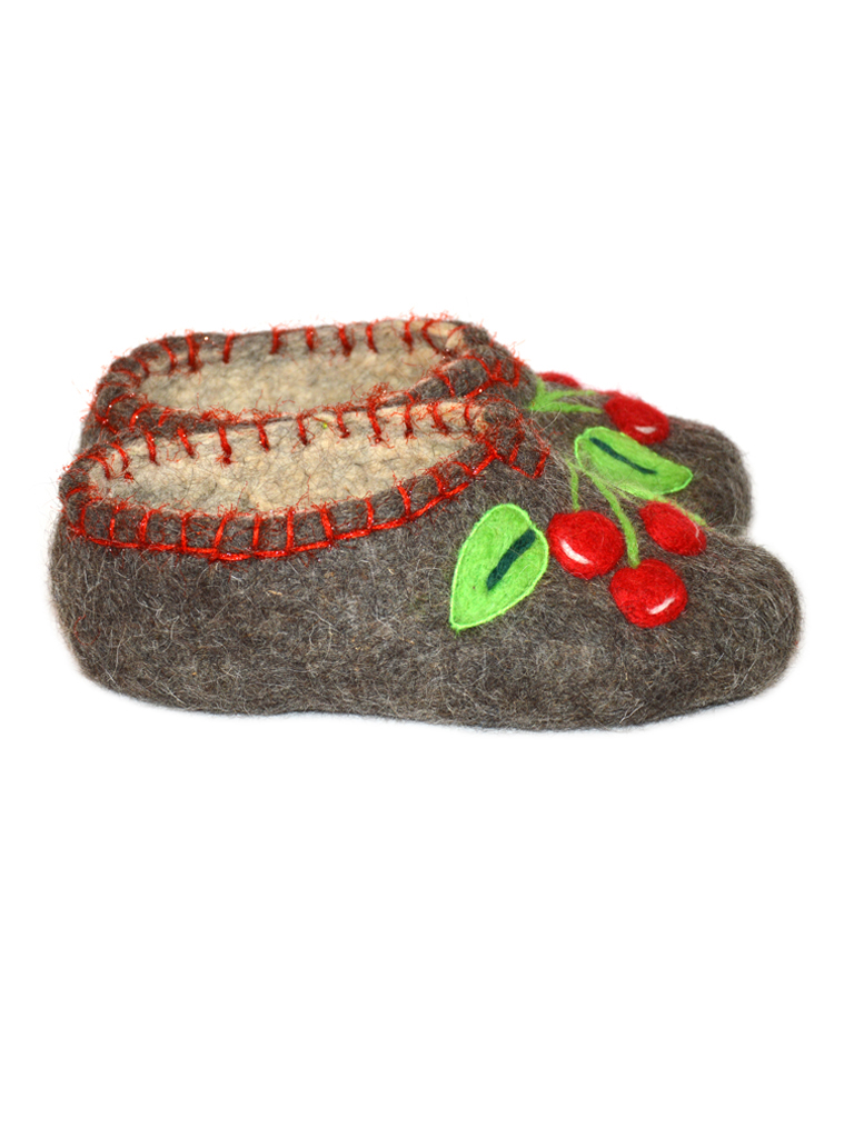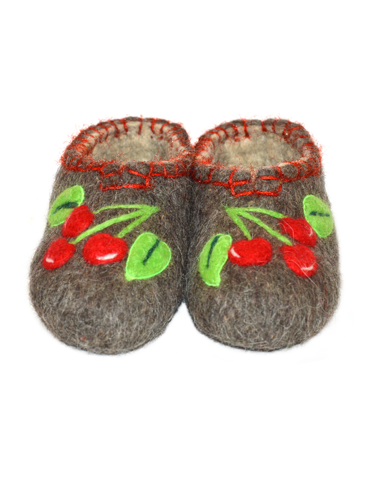 Тапочки женские "Вишенки" изготовлены из 100% овечьей шерсти.