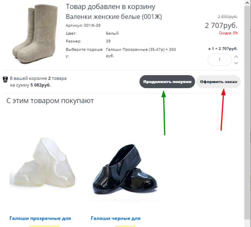 Для продолжения оформления заказа нажмите на кнопку «Оформить заказ», либо на кнопку "Продолжить покупки" для добавления новых товаров.