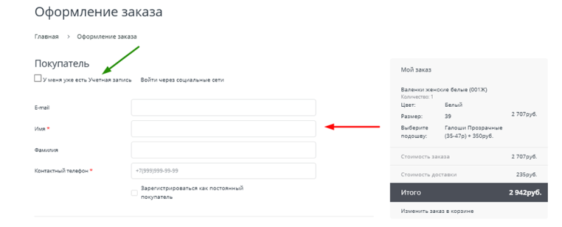 Если вы являетесь нашим клиентом, то для быстрого оформления заказа вы можете нажать на кнопку «Войти». Если заказ будет оформлен впервые, то нажмите на кнопку «Регистрация»