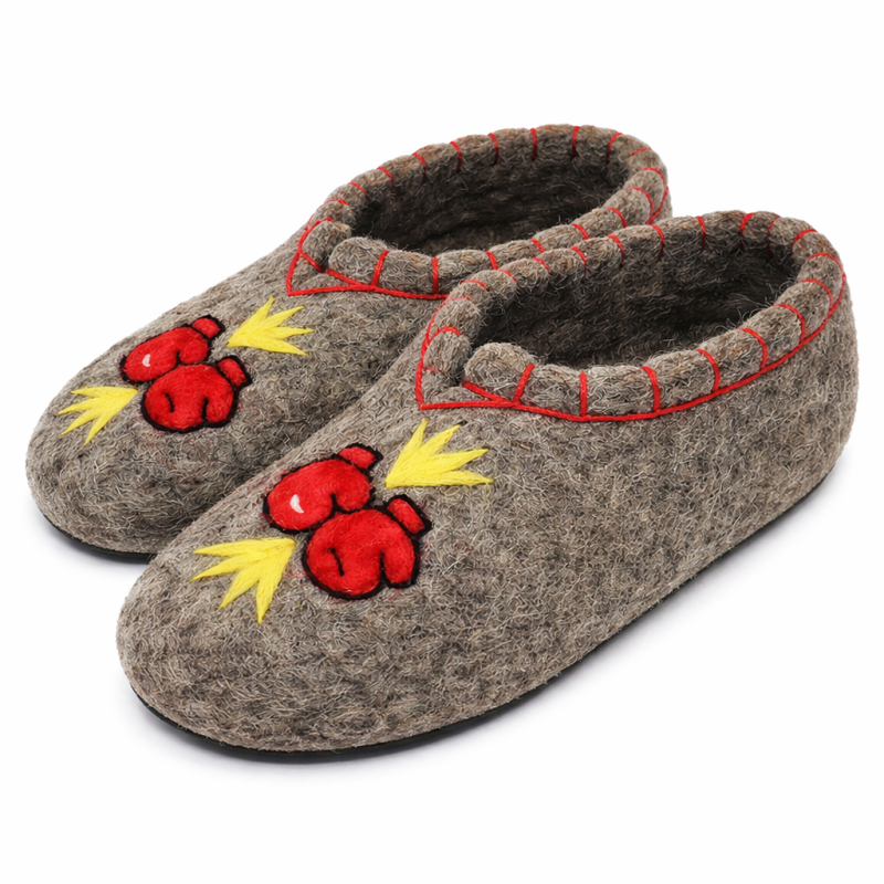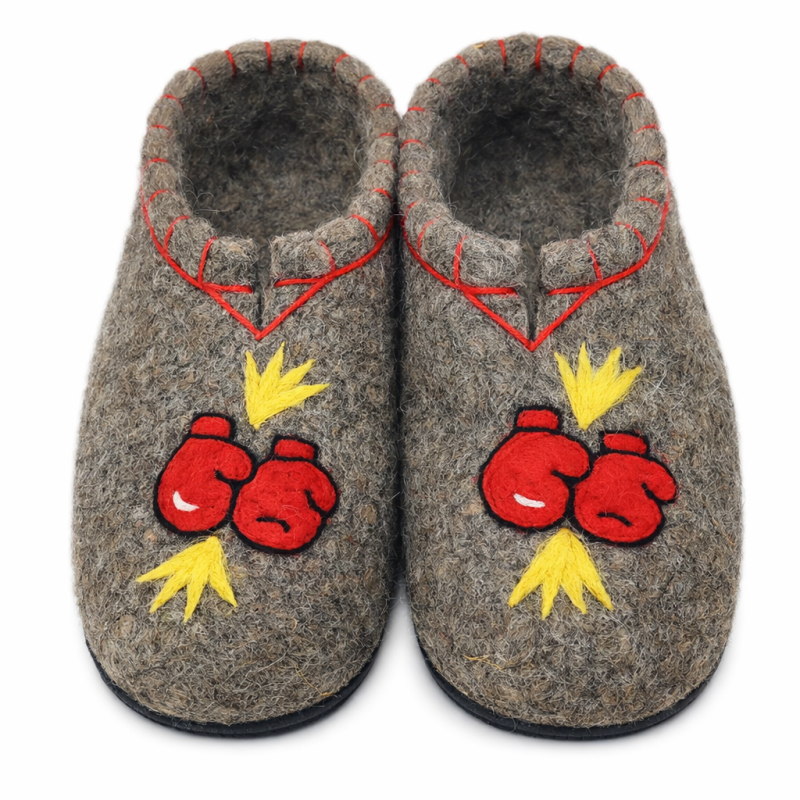 Тапочки мужские "Бокс" изготовлены из 100% овечьей шерсти. Шерсть улучшает циркуляцию крови в ногах, снимает усталость и тяжесть. Ноги в тапочках никогда не потеют. Тапочки отлично поддерживают температурный режим, летом в них не будет жарко, а зимой холодно. А яркие рисунки, сделанные вручную нашими дизайнерами будут радовать зимними вечерами. Советуем выбирать тапочки размер в размер с повседневной обувью. Также мы можем вам предложить к данным тапочкам подошву из микропоры, с ним изделие прослужит 2-3 раза дольше. Оплатить ваш заказ вы можете при получении в курьерских службах СДЭК и Boxberry. При выборе способа доставки "Почта России" оплата заказа производится на сайте. Срок возврата товара надлежащего качества составляет 14 дней с момента получения товара. материал: натуральная шерсть температурный диапазон: от -40 до 0 градусов способ изготовления: ручная работа особенности модели: дышащий материал сезон: зима