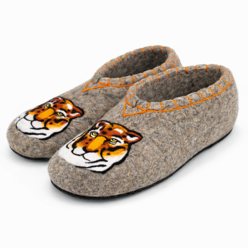 Тапочки мужские "Полосатый хищник" изготовлены из 100% овечьей шерсти. Шерсть улучшает циркуляцию крови в ногах, снимает усталость и тяжесть. Ноги в тапочках никогда не потеют. Тапочки отлично поддерживают температурный режим, летом в них не будет жарко, а зимой холодно. А яркие рисунки, сделанные вручную нашими дизайнерами будут радовать зимними вечерами. Советуем выбирать тапочки размер в размер с повседневной обувью. Также мы можем вам предложить к данным тапочкам подошву из микропоры, с ним изделие прослужит 2-3 раза дольше. Оплатить ваш заказ вы можете при получении в курьерских службах СДЭК и Boxberry. При выборе способа доставки "Почта России" оплата заказа производится на сайте. Срок возврата товара надлежащего качества составляет 14 дней с момента получения товара. материал: натуральная шерсть температурный диапазон: от -40 до 0 градусов способ изготовления: ручная работа особенности модели: дышащий материал сезон: зима