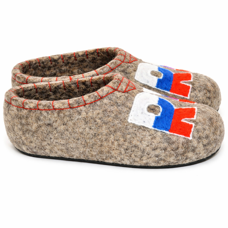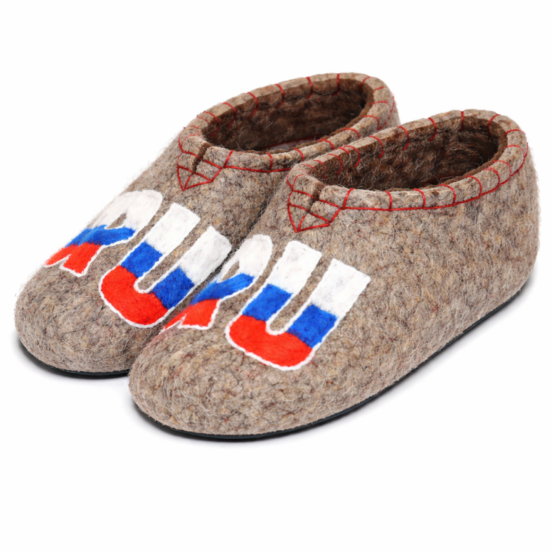 Тапочки мужские "RU" изготовлены из 100% овечьей шерсти. Шерсть улучшает циркуляцию крови в ногах, снимает усталость и тяжесть. Ноги в тапочках никогда не потеют. Тапочки отлично поддерживают температурный режим, летом в них не будет жарко, а зимой холодно. А яркие рисунки, сделанные вручную нашими дизайнерами будут радовать зимними вечерами. Советуем выбирать тапочки размер в размер с повседневной обувью. Также мы можем вам предложить к данным тапочкам подошву из микропоры, с ним изделие прослужит 2-3 раза дольше. Оплатить ваш заказ вы можете при получении в курьерских службах СДЭК и Boxberry. При выборе способа доставки "Почта России" оплата заказа производится на сайте. Срок возврата товара надлежащего качества составляет 14 дней с момента получения товара. материал: натуральная шерсть температурный диапазон: от -40 до 0 градусов способ изготовления: ручная работа особенности модели: дышащий материал сезон: зима