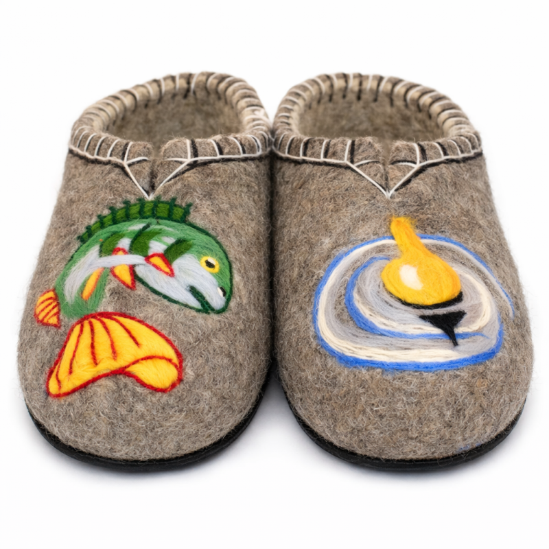 Тапочки мужские "Рыбалка" изготовлены из 100% овечьей шерсти. Шерсть улучшает циркуляцию крови в ногах, снимает усталость и тяжесть. Ноги в тапочках никогда не потеют. Тапочки отлично поддерживают температурный режим, летом в них не будет жарко, а зимой холодно. А яркие рисунки, сделанные вручную нашими дизайнерами будут радовать зимними вечерами. Советуем выбирать тапочки размер в размер с повседневной обувью. Также мы можем вам предложить к данным тапочкам подошву из микропоры, с ним изделие прослужит 2-3 раза дольше. Оплатить ваш заказ вы можете при получении в курьерских службах СДЭК и Boxberry. При выборе способа доставки "Почта России" оплата заказа производится на сайте. Срок возврата товара надлежащего качества составляет 14 дней с момента получения товара. материал: натуральная шерсть температурный диапазон: от -40 до 0 градусов способ изготовления: ручная работа особенности модели: дышащий материал сезон: зима