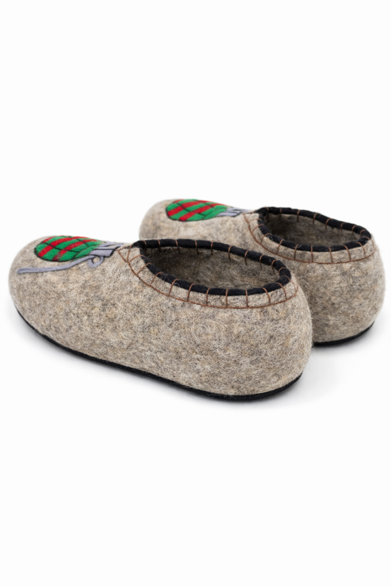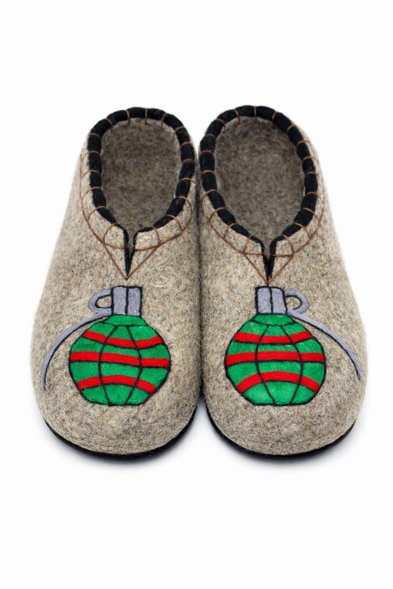 Тапочки мужские изготовлены из 100% овечьей шерсти. Шерсть улучшает циркуляцию крови в ногах, снимает усталость и тяжесть. Ноги в тапочках никогда не потеют. Тапочки отлично поддерживают температурный режим, летом в них не будет жарко, а зимой холодно. А яркие рисунки, сделанные вручную нашими дизайнерами будут радовать зимними вечерами. Советуем выбирать тапочки размер в размер с повседневной обувью. Также мы можем вам предложить к данным тапочкам подошву из микропоры, с ним изделие прослужит 2-3 раза дольше. Оплатить ваш заказ вы можете при получении в курьерских службах СДЭК и Boxberry. При выборе способа доставки "Почта России" оплата заказа производится на сайте. Срок возврата товара надлежащего качества составляет 14 дней с момента получения товара. материал: натуральная шерсть температурный диапазон: от -40 до 0 градусов способ изготовления: ручная работа особенности модели: дышащий материал сезон: зима