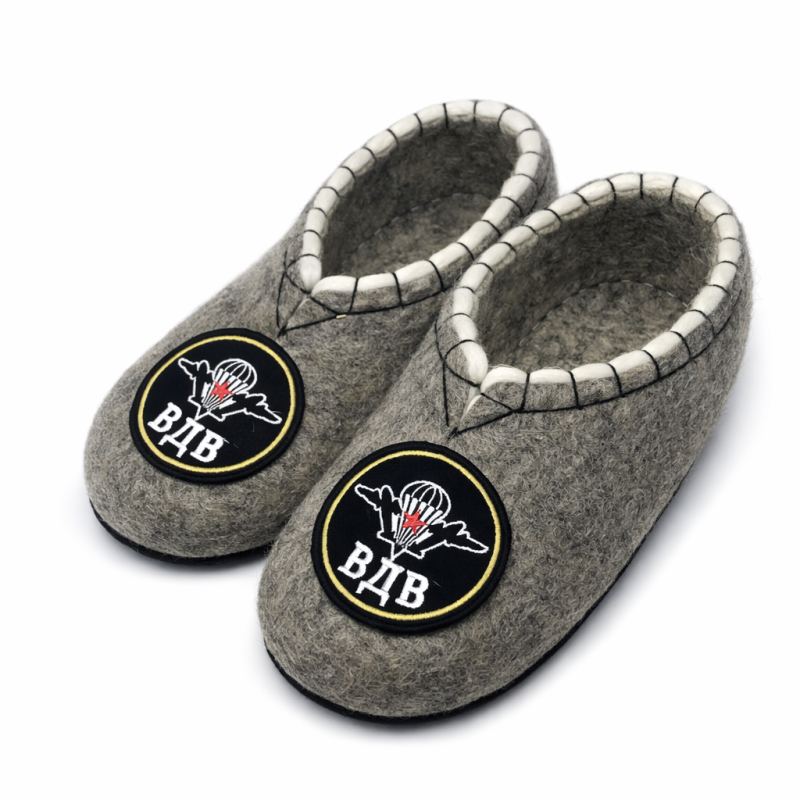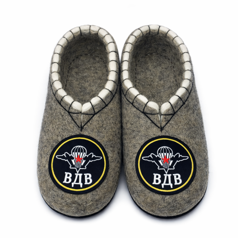 Тапочки мужские "ВДВ" изготовлены из 100% овечьей шерсти. Шерсть улучшает циркуляцию крови в ногах, снимает усталость и тяжесть. Ноги в тапочках никогда не потеют. Тапочки отлично поддерживают температурный режим, летом в них не будет жарко, а зимой холодно. А яркие рисунки, сделанные вручную нашими дизайнерами будут радовать зимними вечерами. Советуем выбирать тапочки размер в размер с повседневной обувью. Также мы можем вам предложить к данным тапочкам подошву из микропоры, с ним изделие прослужит 2-3 раза дольше. Оплатить ваш заказ вы можете при получении в курьерских службах СДЭК и Boxberry. При выборе способа доставки "Почта России" оплата заказа производится на сайте. Срок возврата товара надлежащего качества составляет 14 дней с момента получения товара. материал: натуральная шерсть температурный диапазон: от -40 до 0 градусов способ изготовления: ручная работа особенности модели: дышащий материал сезон: зима