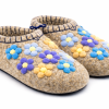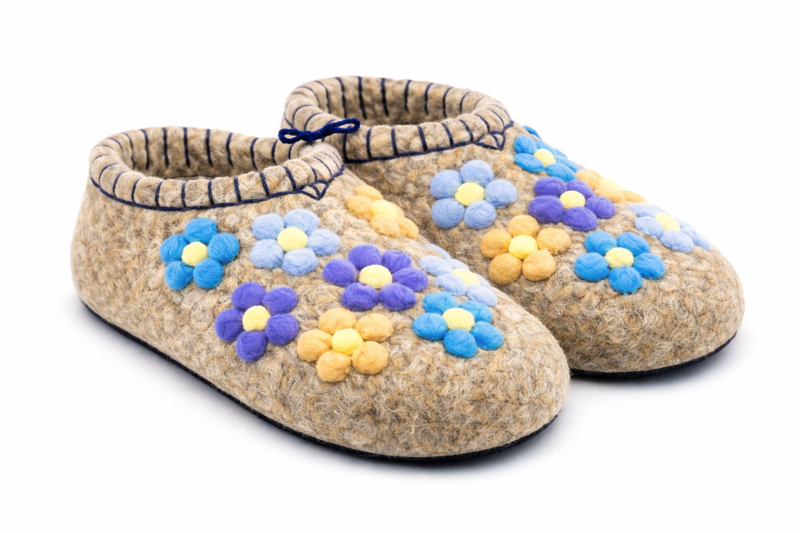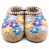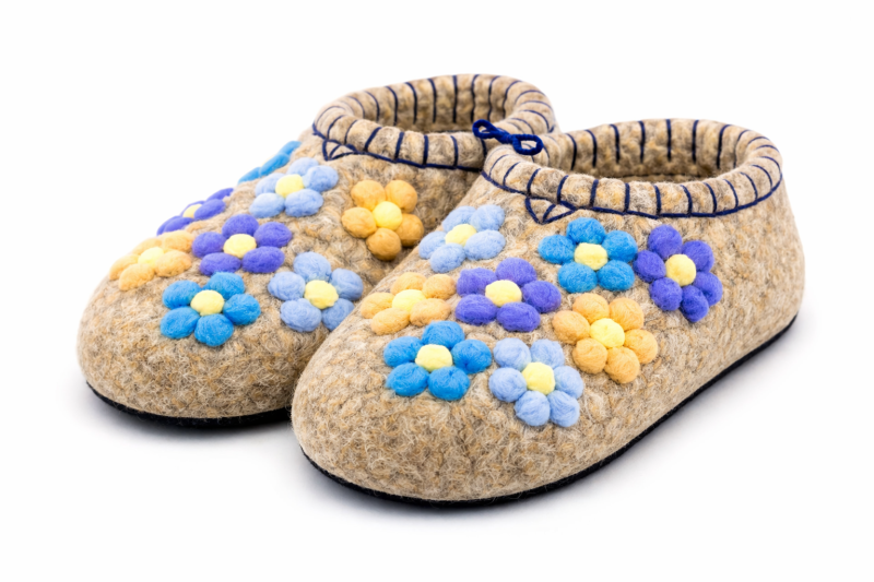 Тапочки женские "Игрушечные цветы" изготовлены из 100% овечьей шерсти. Шерсть улучшает циркуляцию крови в ногах, снимает усталость и тяжесть. Ноги в тапочках никогда не потеют. Тапочки отлично поддерживают температурный режим, летом в них не будет жарко, а зимой холодно. А яркие рисунки, сделанные вручную нашими дизайнерами будут радовать зимними вечерами. Советуем выбирать тапочки размер в размер с повседневной обувью. Также мы можем вам предложить к данным тапочкам подошву из микропоры, с ним изделие прослужит 2-3 раза дольше. Оплатить ваш заказ вы можете при получении в курьерских службах СДЭК и Boxberry. При выборе способа доставки "Почта России" оплата заказа производится на сайте. Срок возврата товара надлежащего качества составляет 14 дней с момента получения товара. материал: натуральная шерсть температурный диапазон: от -40 до 0 градусов способ изготовления: ручная работа особенности модели: дышащий материал сезон: зима