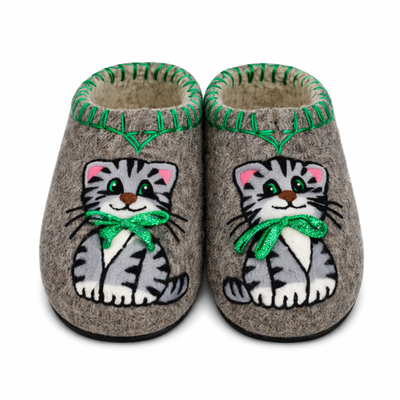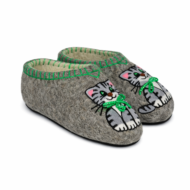 Тапочки женские "Котик" изготовлены из 100% овечьей шерсти. Шерсть улучшает циркуляцию крови в ногах, снимает усталость и тяжесть. Ноги в тапочках никогда не потеют. Тапочки отлично поддерживают температурный режим, летом в них не будет жарко, а зимой холодно. А яркие рисунки, сделанные вручную нашими дизайнерами будут радовать зимними вечерами. Советуем выбирать тапочки размер в размер с повседневной обувью. Также мы можем вам предложить к данным тапочкам подошву из микропоры, с ним изделие прослужит 2-3 раза дольше. Оплатить ваш заказ вы можете при получении в курьерских службах СДЭК и Boxberry. При выборе способа доставки "Почта России" оплата заказа производится на сайте. Срок возврата товара надлежащего качества составляет 14 дней с момента получения товара. материал: натуральная шерсть температурный диапазон: от -40 до 0 градусов способ изготовления: ручная работа особенности модели: дышащий материал сезон: зима