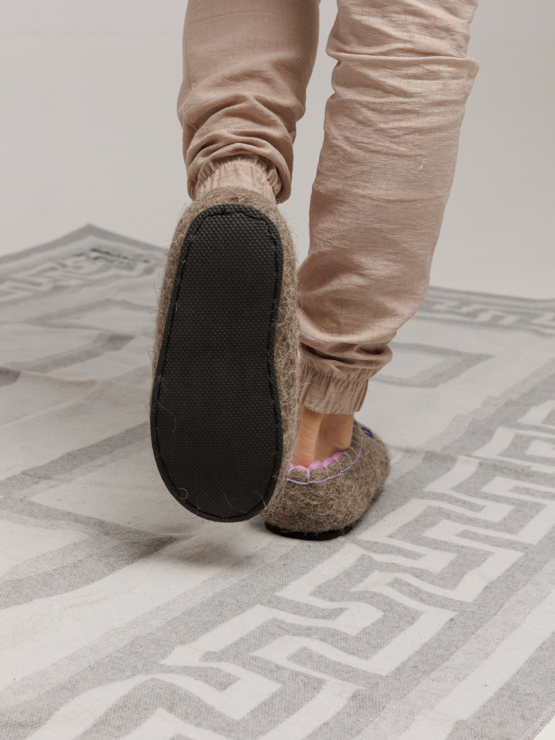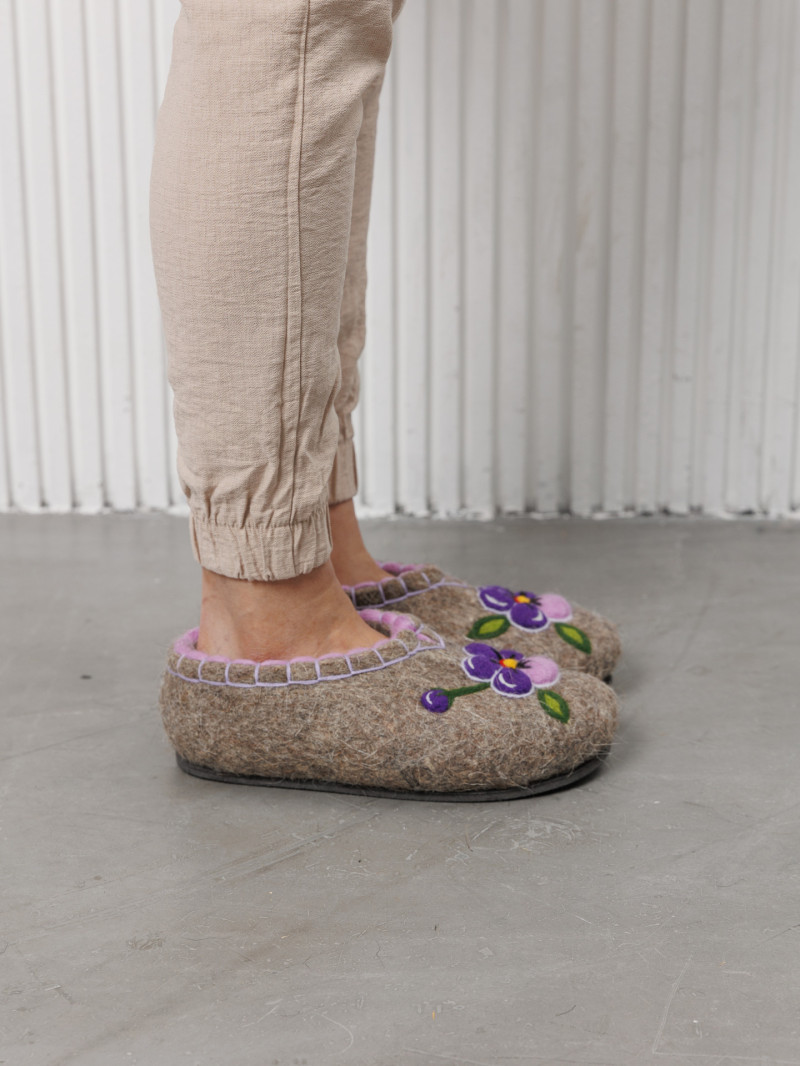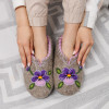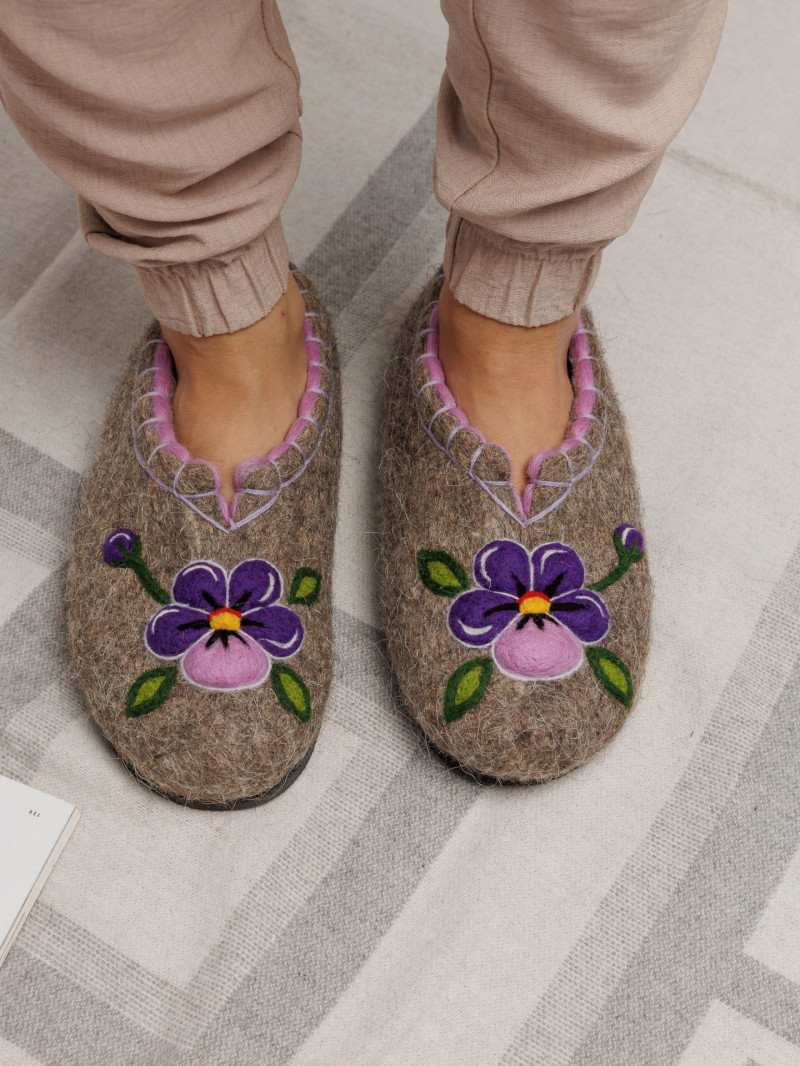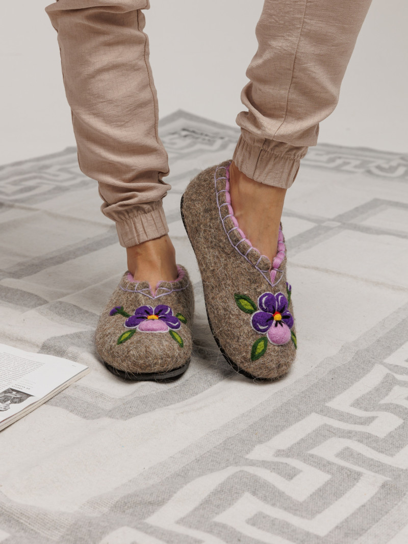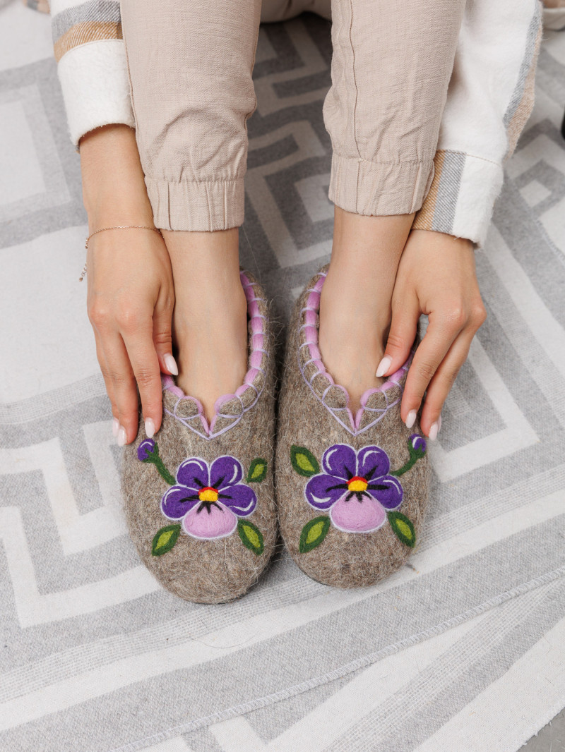 Тапочки женские "Крокусы" изготовлены из 100% овечьей шерсти. Шерсть улучшает циркуляцию крови в ногах, снимает усталость и тяжесть. Ноги в тапочках никогда не потеют. Тапочки отлично поддерживают температурный режим, летом в них не будет жарко, а зимой холодно. А яркие рисунки, сделанные вручную нашими дизайнерами будут радовать зимними вечерами. Советуем выбирать тапочки размер в размер с повседневной обувью. Также мы можем вам предложить к данным тапочкам подошву из микропоры, с ним изделие прослужит 2-3 раза дольше. Оплатить ваш заказ вы можете при получении в курьерских службах СДЭК и Boxberry. При выборе способа доставки "Почта России" оплата заказа производится на сайте. Срок возврата товара надлежащего качества составляет 14 дней с момента получения товара. материал: натуральная шерсть температурный диапазон: от -40 до 0 градусов способ изготовления: ручная работа особенности модели: дышащий материал сезон: зима