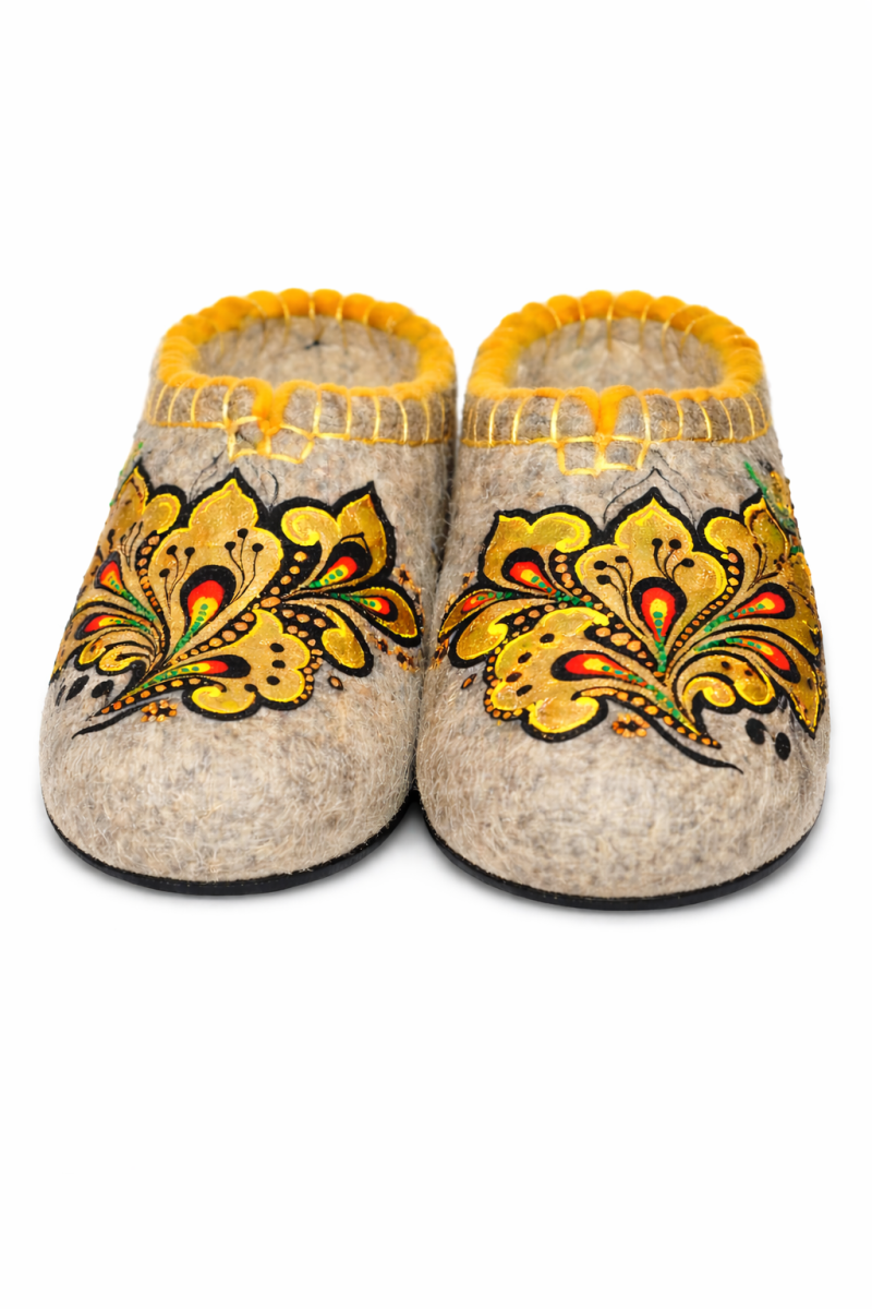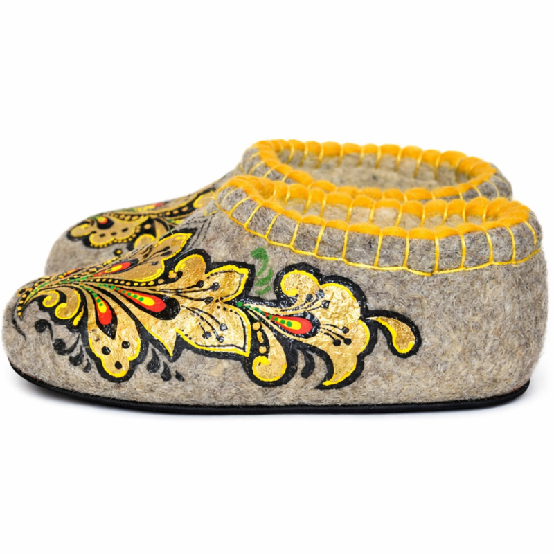 Тапочки женские "Моника" изготовлены из 100% овечьей шерсти. Шерсть улучшает циркуляцию крови в ногах, снимает усталость и тяжесть. Ноги в тапочках никогда не потеют. Тапочки отлично поддерживают температурный режим, летом в них не будет жарко, а зимой холодно. А яркие рисунки, сделанные вручную нашими дизайнерами будут радовать зимними вечерами. Советуем выбирать тапочки размер в размер с повседневной обувью. Также мы можем вам предложить к данным тапочкам подошву из микропоры, с ним изделие прослужит 2-3 раза дольше. Оплатить ваш заказ вы можете при получении в курьерских службах СДЭК и Boxberry. При выборе способа доставки "Почта России" оплата заказа производится на сайте. Срок возврата товара надлежащего качества составляет 14 дней с момента получения товара. материал: натуральная шерсть температурный диапазон: от -40 до 0 градусов способ изготовления: ручная работа особенности модели: дышащий материал сезон: зима