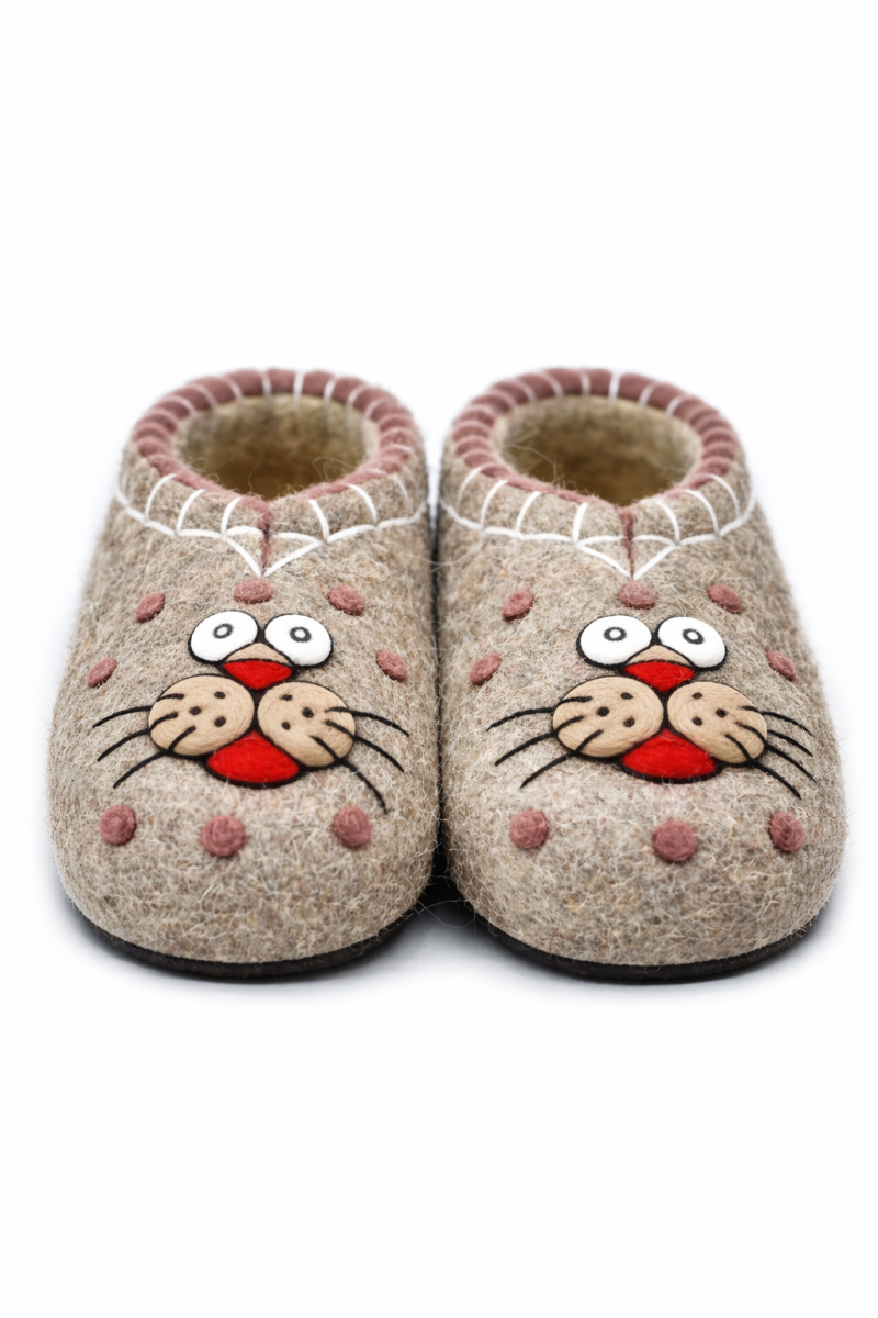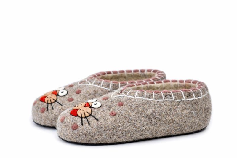 Тапочки женские "Мурка" изготовлены из 100% овечьей шерсти. Шерсть улучшает циркуляцию крови в ногах, снимает усталость и тяжесть. Ноги в тапочках никогда не потеют. Тапочки отлично поддерживают температурный режим, летом в них не будет жарко, а зимой холодно. А яркие рисунки, сделанные вручную нашими дизайнерами будут радовать зимними вечерами. Советуем выбирать тапочки размер в размер с повседневной обувью. Также мы можем вам предложить к данным тапочкам подошву из микропоры, с ним изделие прослужит 2-3 раза дольше. Оплатить ваш заказ вы можете при получении в курьерских службах СДЭК и Boxberry. При выборе способа доставки "Почта России" оплата заказа производится на сайте. Срок возврата товара надлежащего качества составляет 14 дней с момента получения товара. материал: натуральная шерсть температурный диапазон: от -40 до 0 градусов способ изготовления: ручная работа особенности модели: дышащий материал сезон: зима