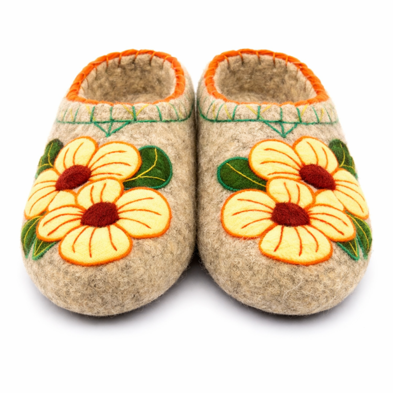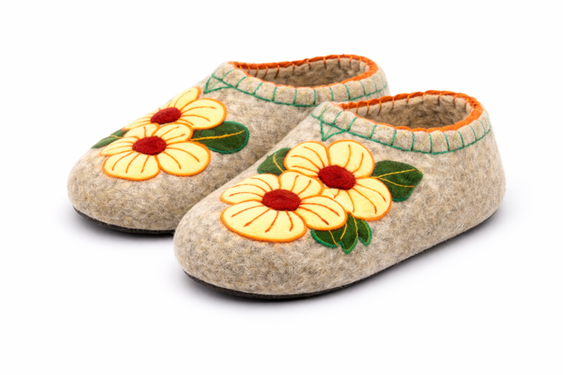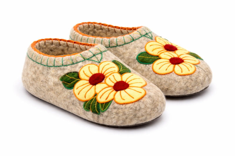 Тапочки женские "Полёвки" изготовлены из 100% овечьей шерсти. Шерсть улучшает циркуляцию крови в ногах, снимает усталость и тяжесть. Ноги в тапочках никогда не потеют. Тапочки отлично поддерживают температурный режим, летом в них не будет жарко, а зимой холодно. А яркие рисунки, сделанные вручную нашими дизайнерами будут радовать зимними вечерами. Советуем выбирать тапочки размер в размер с повседневной обувью. Также мы можем вам предложить к данным тапочкам подошву из микропоры, с ним изделие прослужит 2-3 раза дольше. Оплатить ваш заказ вы можете при получении в курьерских службах СДЭК и Boxberry. При выборе способа доставки "Почта России" оплата заказа производится на сайте. Срок возврата товара надлежащего качества составляет 14 дней с момента получения товара. материал: натуральная шерсть температурный диапазон: от -40 до 0 градусов способ изготовления: ручная работа особенности модели: дышащий материал сезон: зима