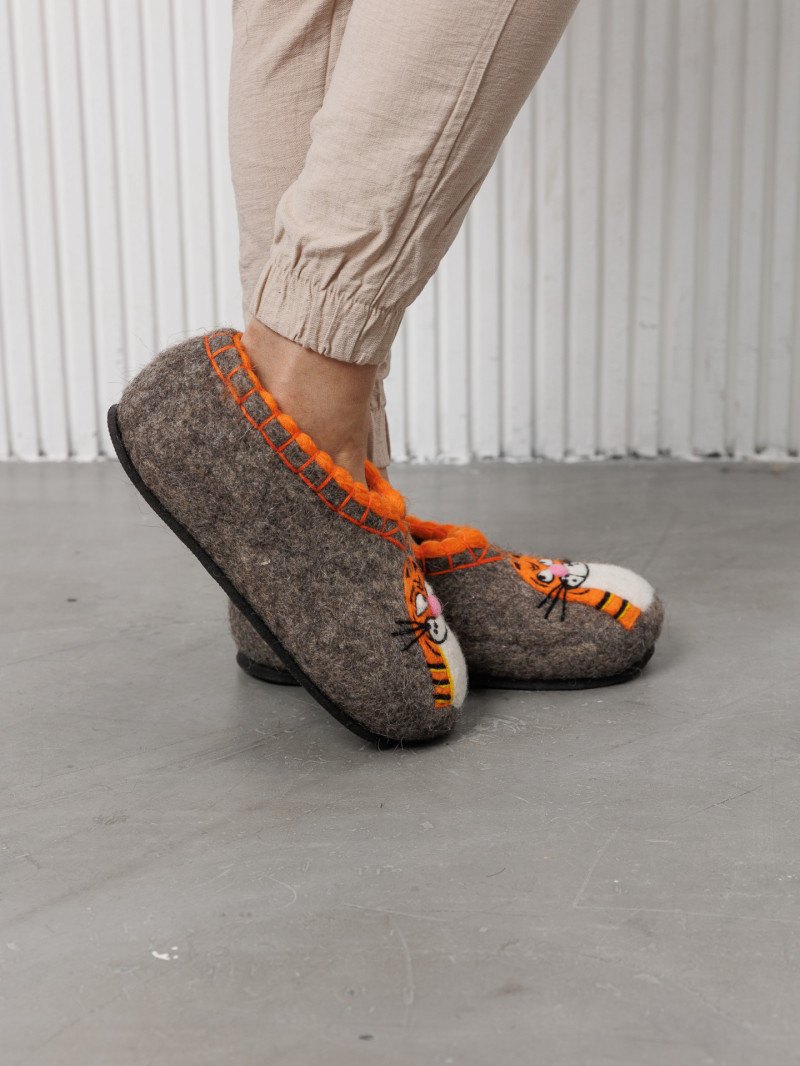 Тапочки женские "Рыжий кот" изготовлены из 100% овечьей шерсти. Шерсть улучшает циркуляцию крови в ногах, снимает усталость и тяжесть. Ноги в тапочках никогда не потеют. Тапочки отлично поддерживают температурный режим, летом в них не будет жарко, а зимой холодно. А яркие рисунки, сделанные вручную нашими дизайнерами будут радовать зимними вечерами. Советуем выбирать тапочки размер в размер с повседневной обувью. Также мы можем вам предложить к данным тапочкам подошву из микропоры, с ним изделие прослужит 2-3 раза дольше. Оплатить ваш заказ вы можете при получении в курьерских службах СДЭК и Boxberry. При выборе способа доставки "Почта России" оплата заказа производится на сайте. Срок возврата товара надлежащего качества составляет 14 дней с момента получения товара. материал: натуральная шерсть температурный диапазон: от -40 до 0 градусов способ изготовления: ручная работа особенности модели: дышащий материал сезон: зима