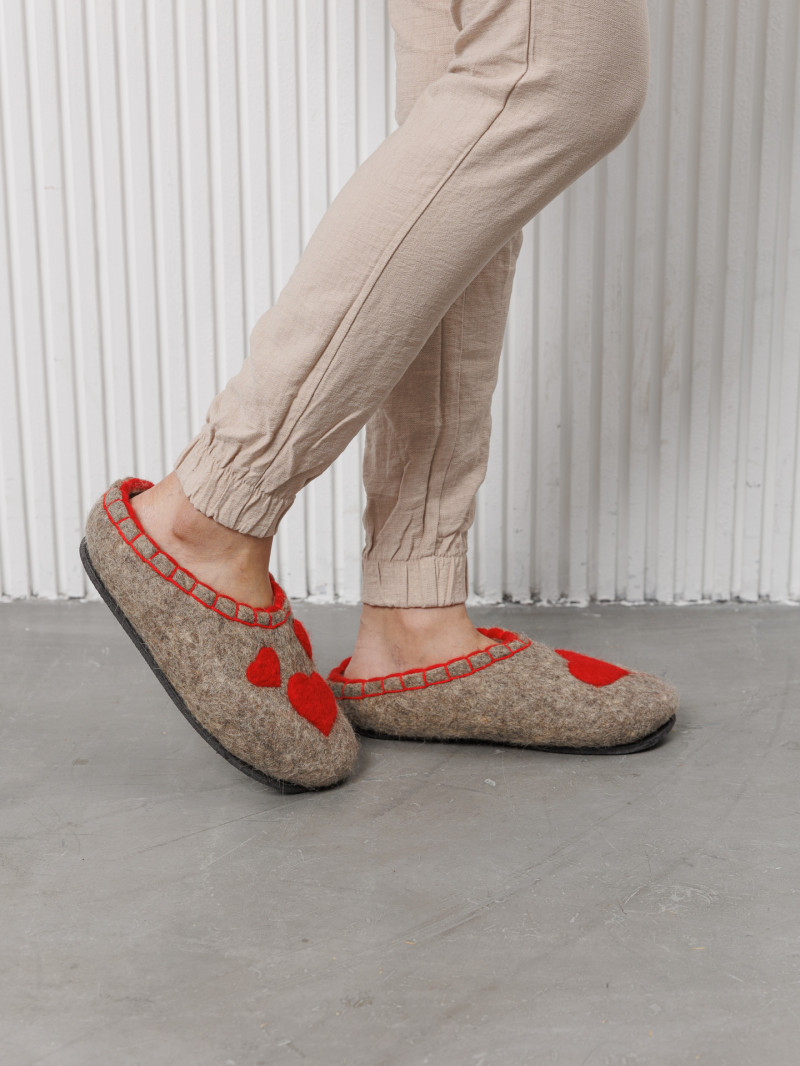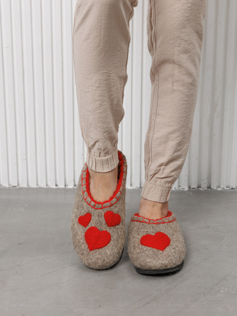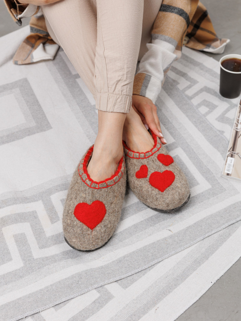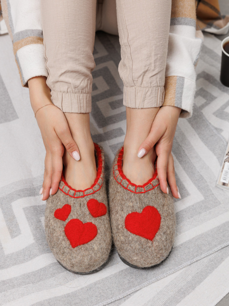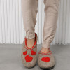 Тапочки женские "Сердечко" изготовлены из 100% овечьей шерсти. Шерсть улучшает циркуляцию крови в ногах, снимает усталость и тяжесть. Ноги в тапочках никогда не потеют. Тапочки отлично поддерживают температурный режим, летом в них не будет жарко, а зимой холодно. А яркие рисунки, сделанные вручную нашими дизайнерами будут радовать зимними вечерами. Советуем выбирать тапочки размер в размер с повседневной обувью. Также мы можем вам предложить к данным тапочкам подошву из микропоры, с ним изделие прослужит 2-3 раза дольше. Оплатить ваш заказ вы можете при получении в курьерских службах СДЭК и Boxberry. При выборе способа доставки "Почта России" оплата заказа производится на сайте. Срок возврата товара надлежащего качества составляет 14 дней с момента получения товара. материал: натуральная шерсть температурный диапазон: от -40 до 0 градусов способ изготовления: ручная работа особенности модели: дышащий материал сезон: зима
