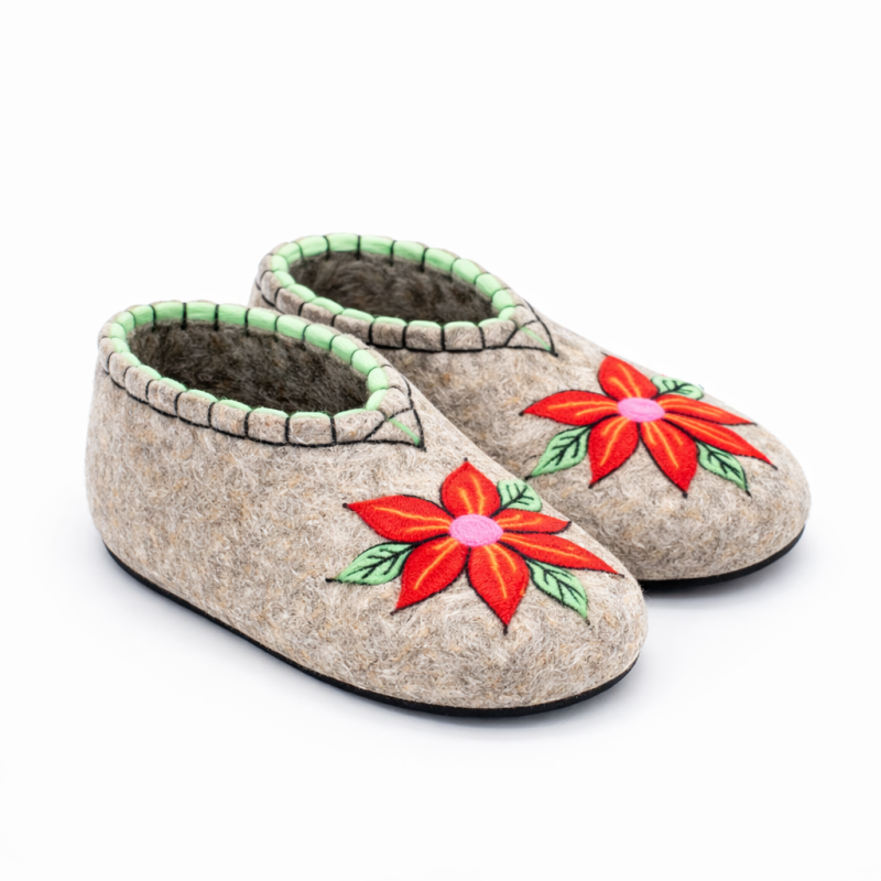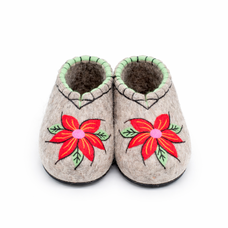 Тапочки женские изготовлены из 100% овечьей шерсти. Шерсть улучшает циркуляцию крови в ногах, снимает усталость и тяжесть. Ноги в тапочках никогда не потеют. Тапочки отлично поддерживают температурный режим, летом в них не будет жарко, а зимой холодно. А яркие рисунки, сделанные вручную нашими дизайнерами будут радовать зимними вечерами. Советуем выбирать тапочки размер в размер с повседневной обувью. Также мы можем вам предложить к данным тапочкам подошву из микропоры, с ним изделие прослужит 2-3 раза дольше. Оплатить ваш заказ вы можете при получении в курьерских службах СДЭК и Boxberry. При выборе способа доставки "Почта России" оплата заказа производится на сайте. Срок возврата товара надлежащего качества составляет 14 дней с момента получения товара. материал: натуральная шерсть температурный диапазон: от -40 до 0 градусов способ изготовления: ручная работа особенности модели: дышащий материал сезон: зима