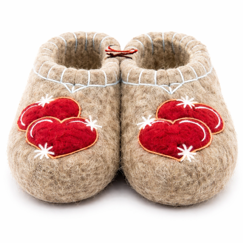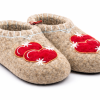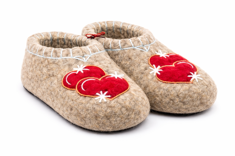 Тапочки женские "Валентинка" изготовлены из 100% овечьей шерсти. Шерсть улучшает циркуляцию крови в ногах, снимает усталость и тяжесть. Ноги в тапочках никогда не потеют. Тапочки отлично поддерживают температурный режим, летом в них не будет жарко, а зимой холодно. А яркие рисунки, сделанные вручную нашими дизайнерами будут радовать зимними вечерами. Советуем выбирать тапочки размер в размер с повседневной обувью. Также мы можем вам предложить к данным тапочкам подошву из микропоры, с ним изделие прослужит 2-3 раза дольше. Оплатить ваш заказ вы можете при получении в курьерских службах СДЭК и Boxberry. При выборе способа доставки "Почта России" оплата заказа производится на сайте. Срок возврата товара надлежащего качества составляет 14 дней с момента получения товара. материал: натуральная шерсть температурный диапазон: от -40 до 0 градусов способ изготовления: ручная работа особенности модели: дышащий материал сезон: зима