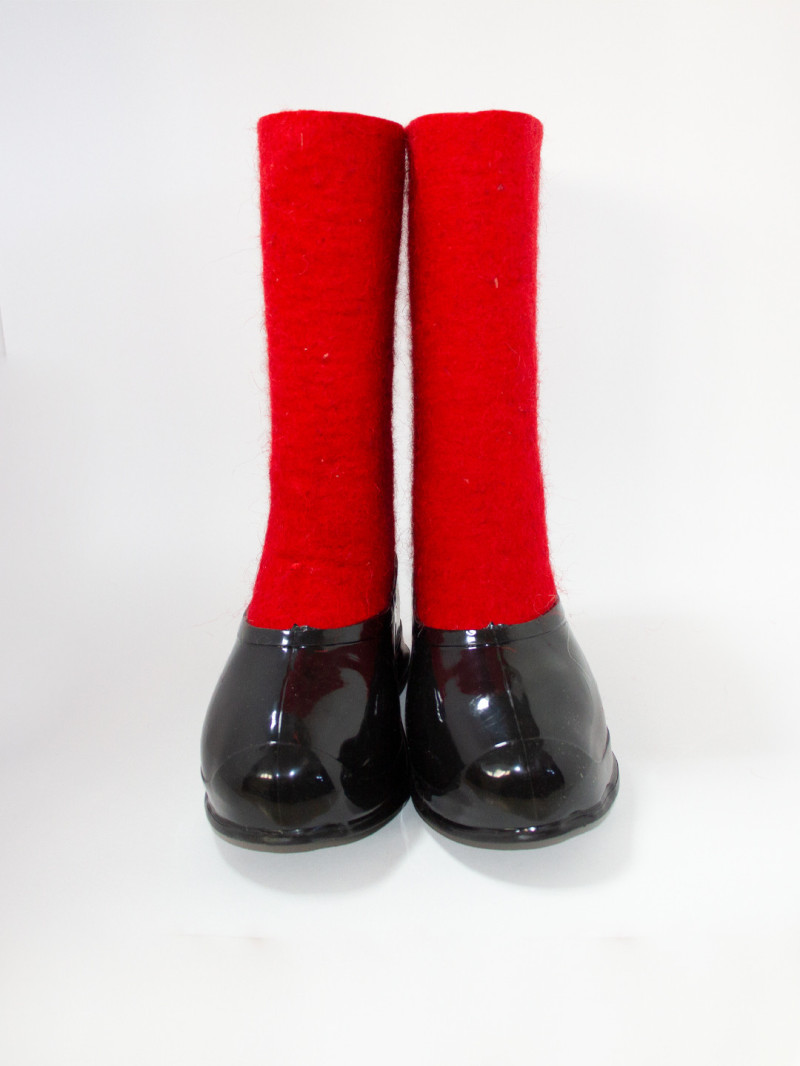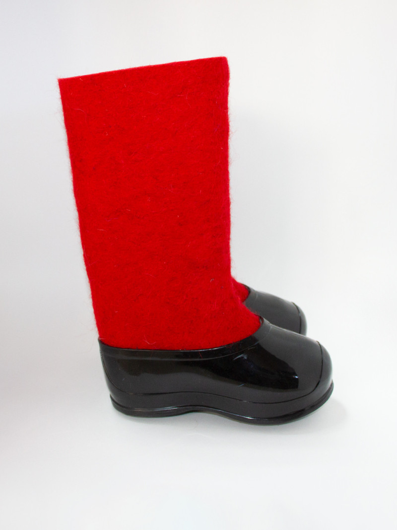 Валенки женские красные с черными галошами (400Ж-СЧ)