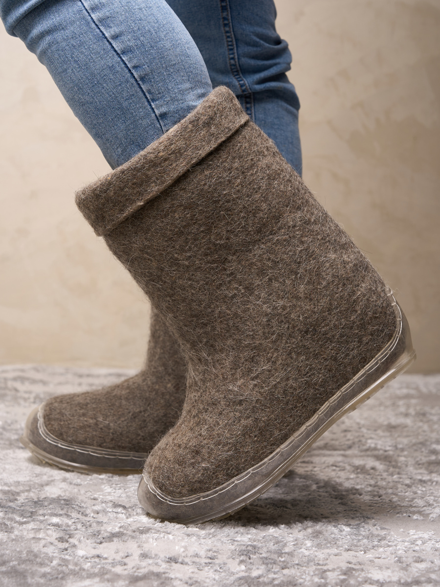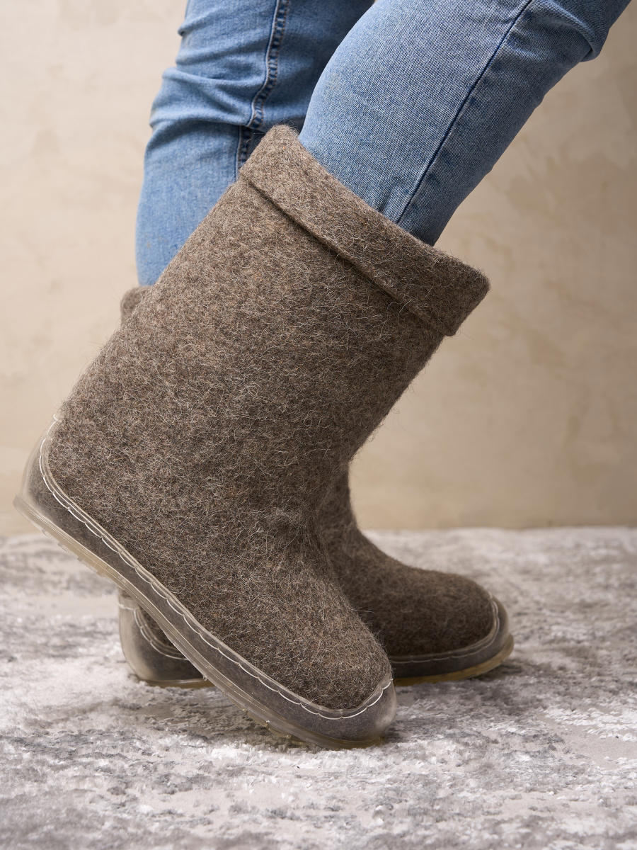 Полуваленки ручной валки серого цвета на силиконовой подошве (200КМ-ПСП)