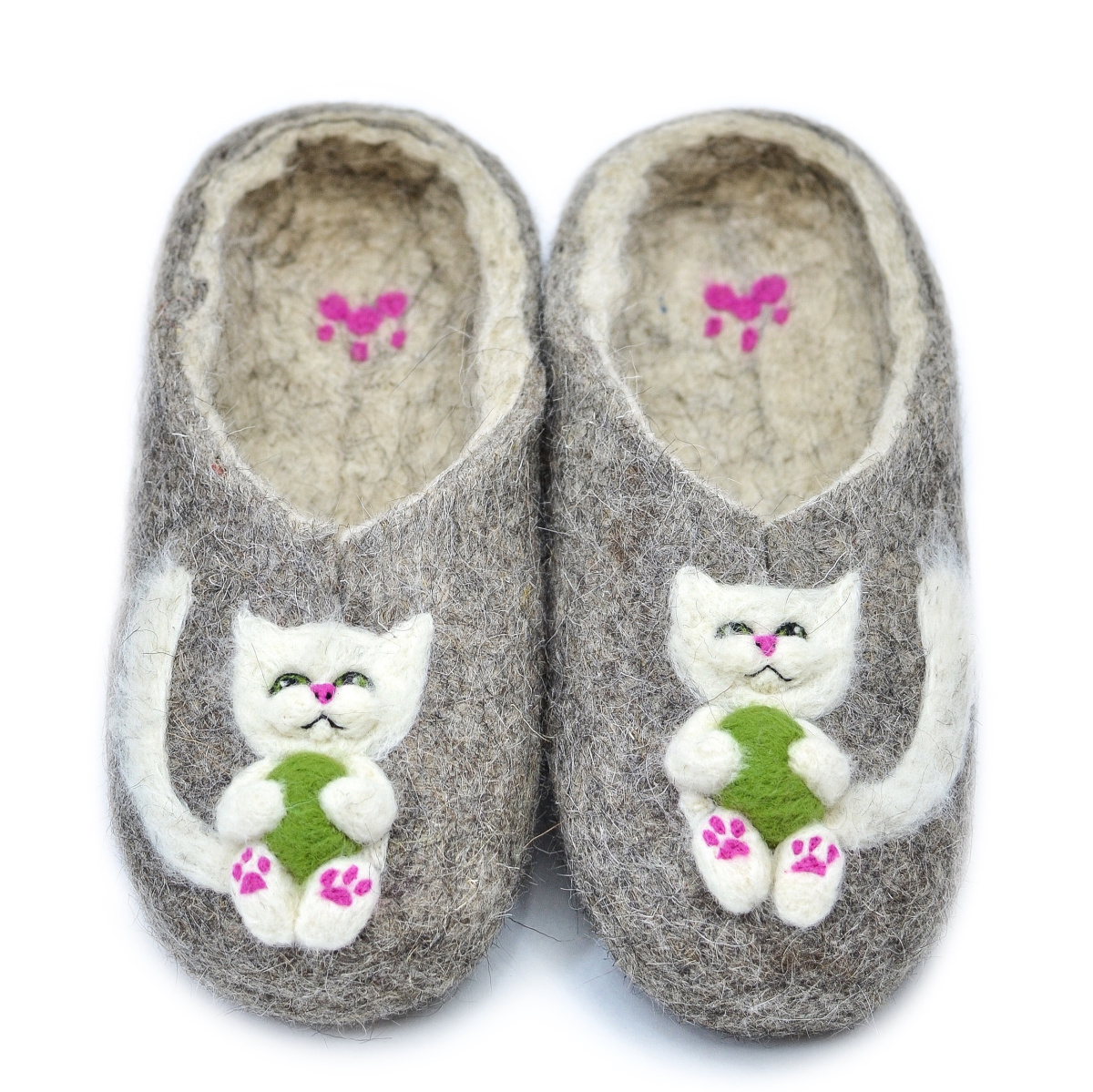 Тапочки женские "Белый котенок" изготовлены из 100% овечьей шерсти.