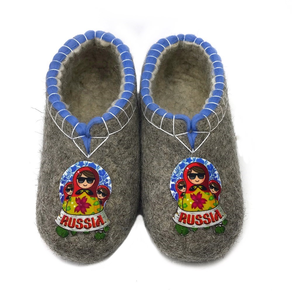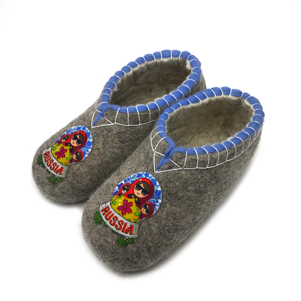 Тапочки женские "Три матрешки" изготовлены из 100% овечьей шерсти.