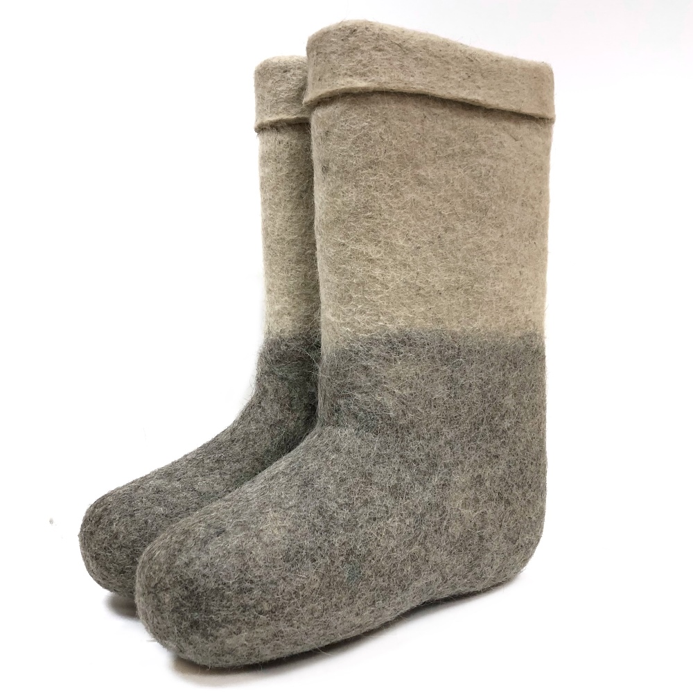 Валенки из натурального войлока серые комбинированные ручной работы (300М) [1413]